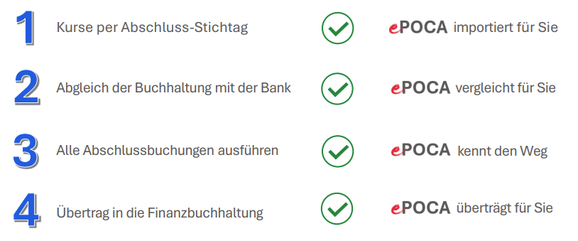 Die Arbeiten rund um den Abschluss Ihrer Wertschriftenbuchhaltung nehmen häufig viel Zeit in Anspruch. Mit seinen umfangreichend Import- und Automatisierungsmöglichkeiten kann ePOCA Sie hierbei effizient unterstützen und Ihnen wertvolle Zeit einsparen.